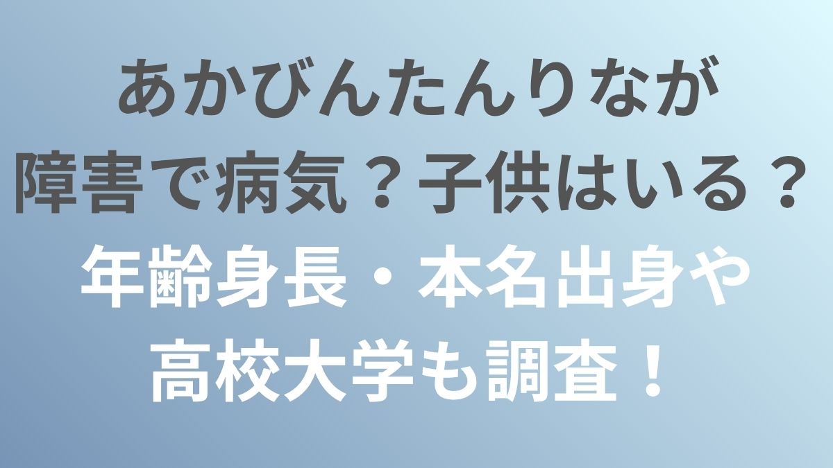 本記事では、あかびんたん・りなさんの年齢身長・本名出身などプロフィールはもちろん、高校大学の学歴に加え、障害や病気・子供の噂の真相に迫りますので、どうぞお楽しみに!