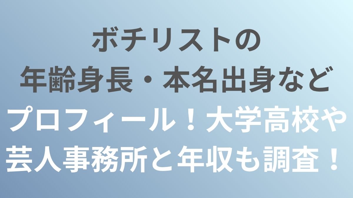 本記事では、ボチリストの年齢身長・本名出身などプロフィール!大学高校や芸人・事務所と年収も調査