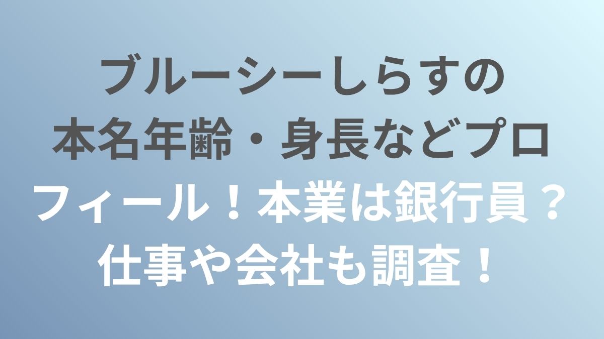 本記事では、ブルーシーしらすの本名年齢・身長などプロフィールや本業が銀行員で仕事や会社も調査していきます。