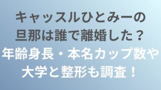 キャッスルひとみーの旦那は誰?キャッスルひとみーは離婚した?キャッスルひとみーの年齢身長・本名カップ数は?キャッスルひとみーの大学は?キャッスルひとみーは整形した?このような疑問を解決していきます。この記事では、キャッスルひとみーは旦那と離...