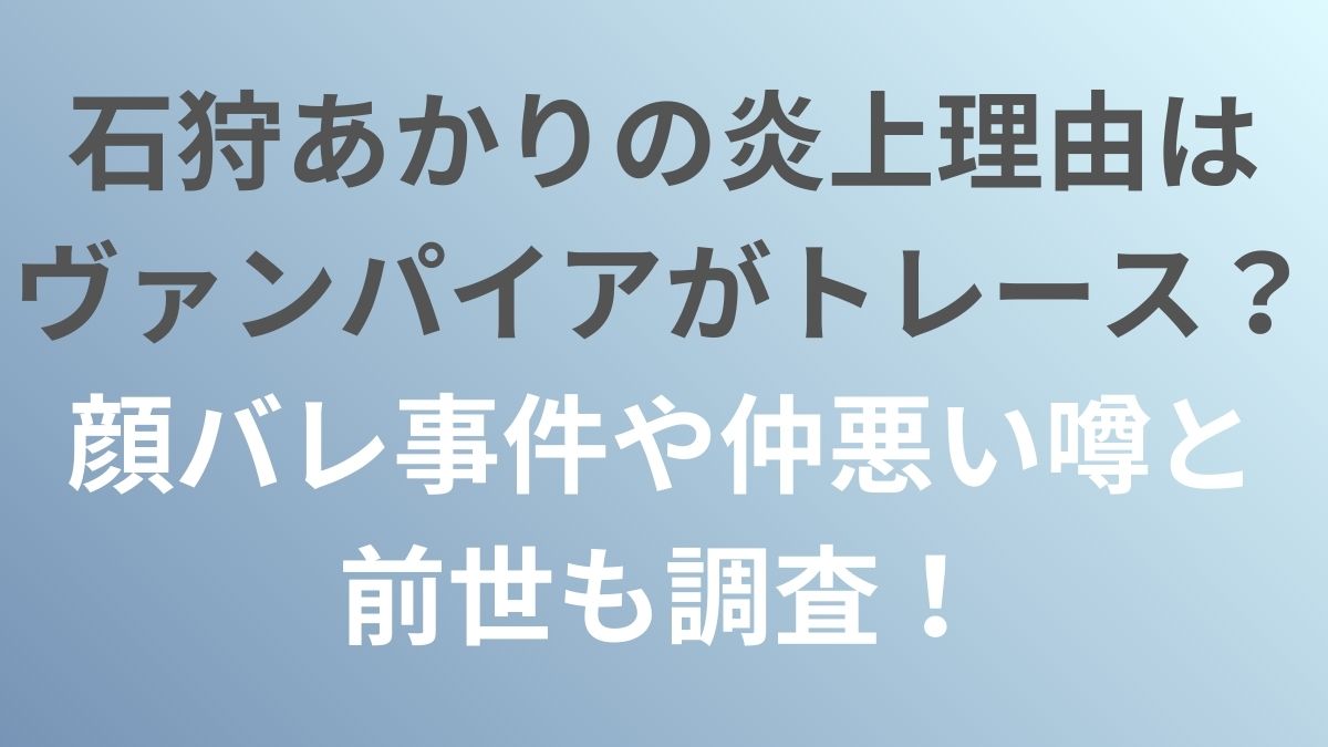 この記事では、石狩あかりの炎上理由はヴァンパイアがトレース?顔バレ事件や仲悪い噂と前世も調査していきます。