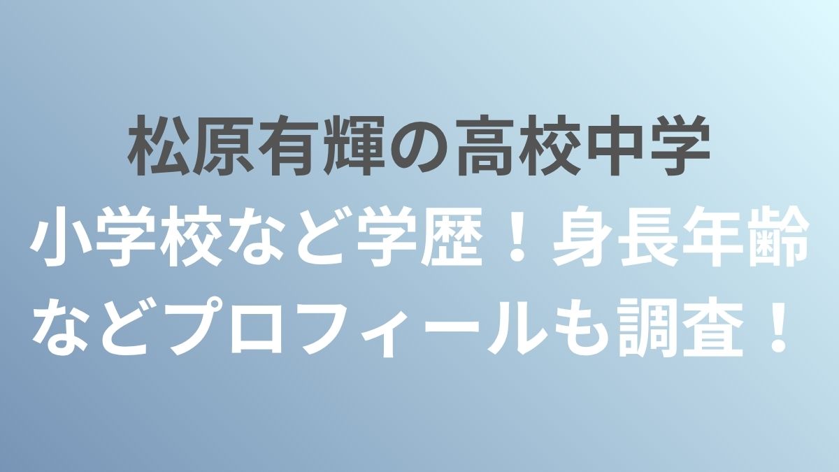 本記事では、松原有輝の高校中学・小学校など学歴や、身長年齢などプロフィールについて徹底調査しています。