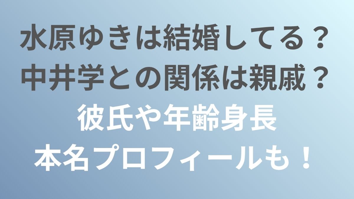 本記事では、水原ゆきさんは結婚してる?中井学さんとの関係は親戚?彼氏や年齢身長・本名プロフィールも詳しく解説していきます。