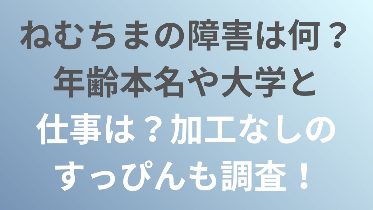 本記事では、ねむちまの障害は何?年齢本名や大学と仕事は?加工なしのすっぴんも調査していきます。