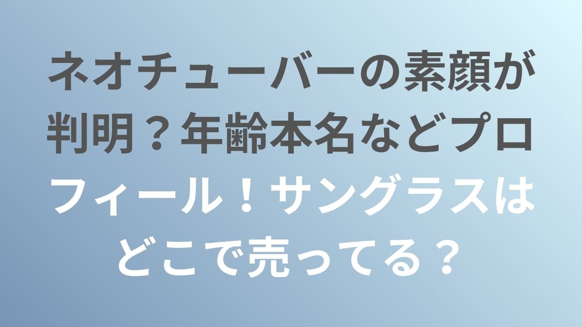 本記事では、ネオチューバーの素顔が判明?年齢本名などプロフィール!サングラスはどこで売ってるのか徹底調査しました。