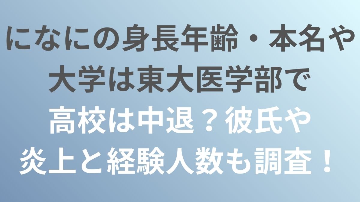 本記事では、になにの身長年齢・本名や大学は東大医学部で高校は中退?彼氏や炎上と経験人数調査していきます。