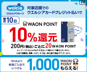 還元率基本0.5〜1%(200円ごとに1ポイントまたは1%割引、1ポイント=1円相当)、ファミリーマートで最大5%割引