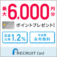 還元率基本1.2%(200円ごとに1ポイント、1ポイント=1円相当)、リクルートサービス利用で最大4.2%