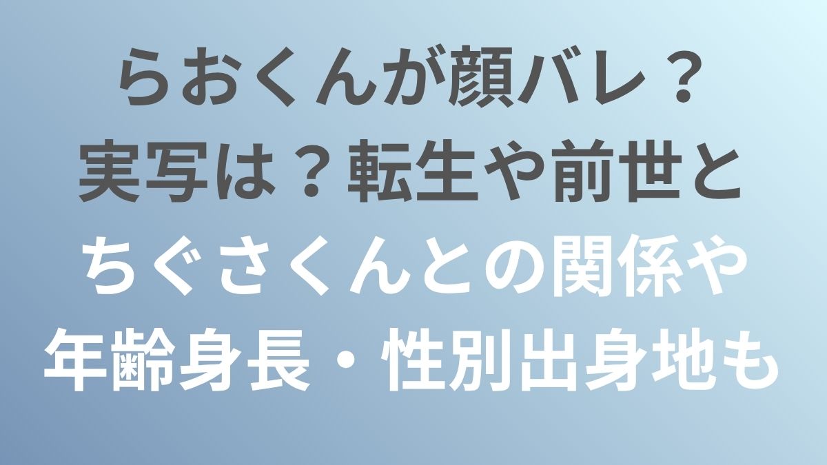 本記事では、らおくんが顔バレ?実写は?転生や前世とちぐさくんとの関係や年齢身長・性別出身地も調査しました。