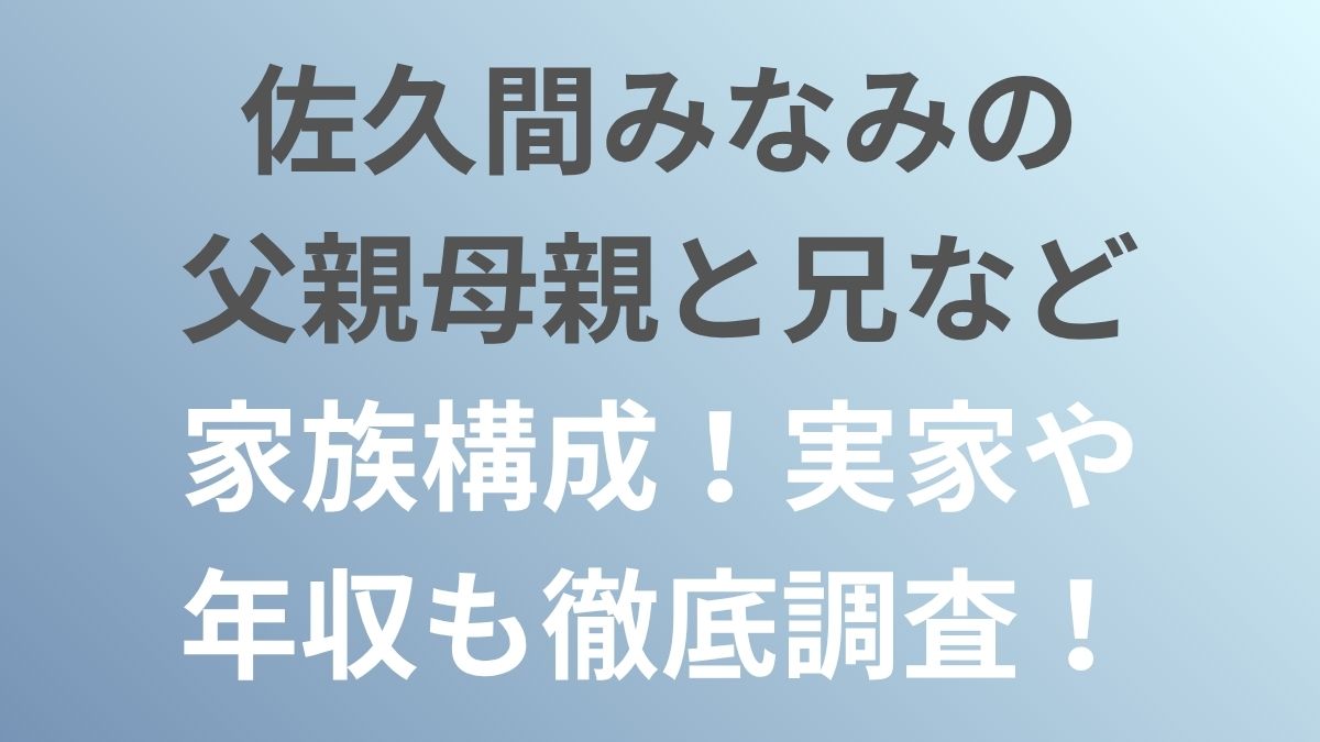 本記事では、佐久間みなみの父親母親と兄など家族構成!実家や年収も徹底調査していきます。