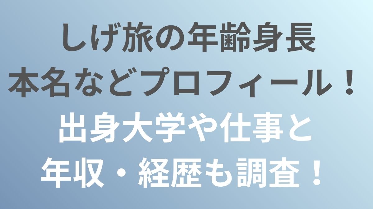 本記事では、しげ旅の年齢身長・本名などプロフィール!出身大学や仕事年収経歴も調査していきます。