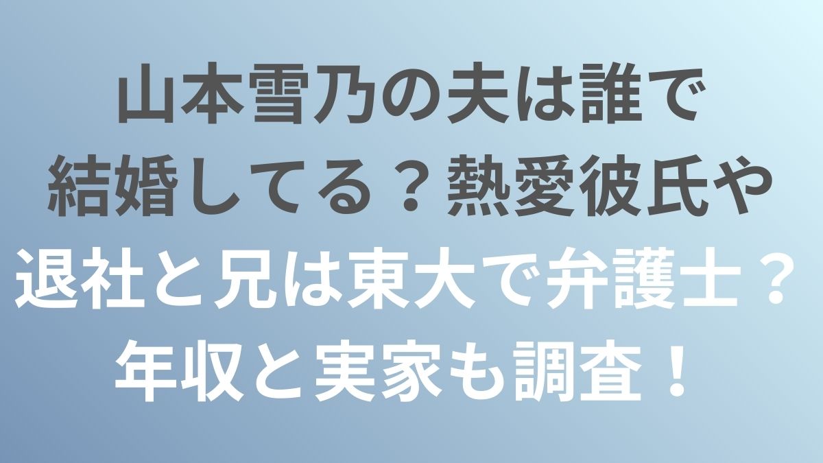 山本雪乃の夫は誰で結婚してる?熱愛彼氏や退社と兄は東大で弁護士?年収と実家などについて調査していきます。